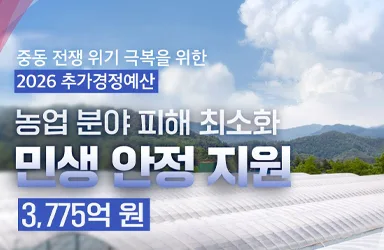 중동 전쟁 위기 극복을 위한 2026년 추가경정예산이 농업 분야 피해 최소화와 민생 안정을 목표로 편성됐다. 면세유 유가연동 보조금 지원은 시설원예에서 농기계까지 확대되며, 주요 농기계 3종에 사용되는 경유에 대해 유가 연동 보조가 한시 적용된다.